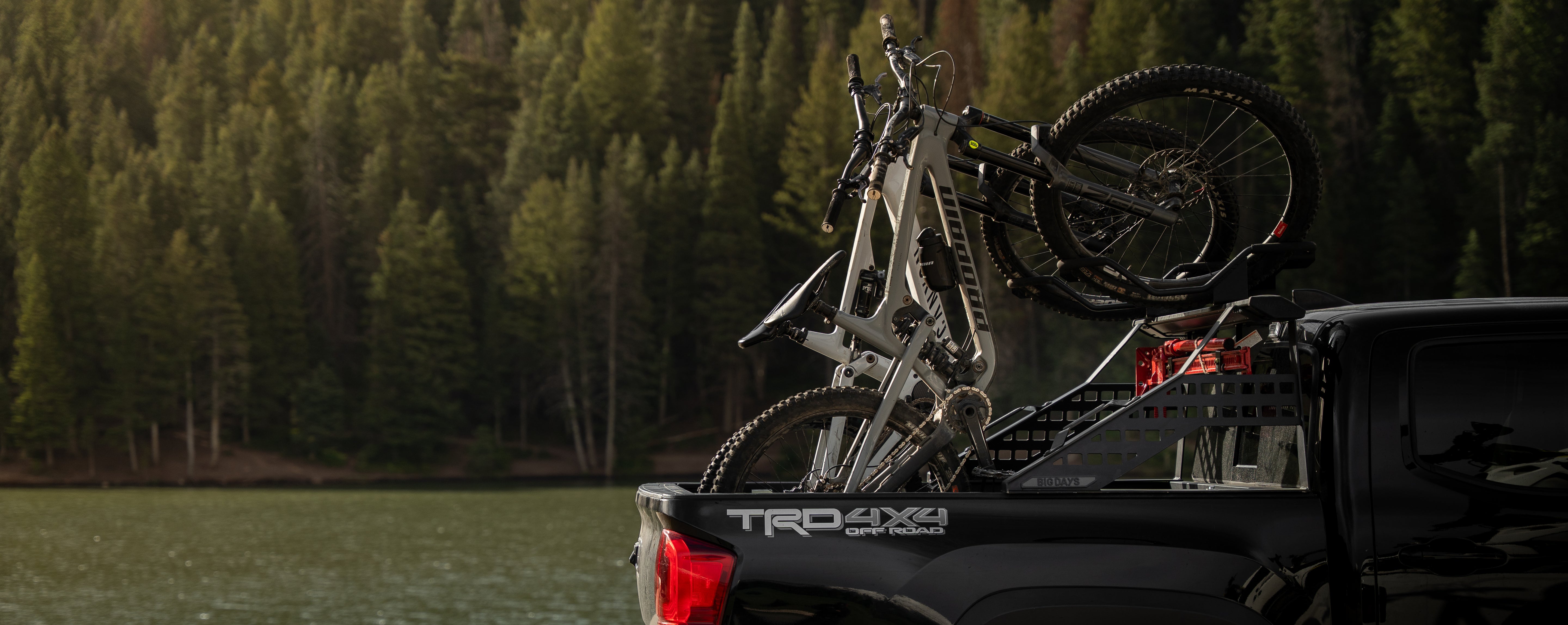 The Truck Rack and Hitch Rack use the same hardware, same cross bars, and same mounts. In light of this we sell the base for the TrailHead hitch rack individually. So if there are days when you want to use the mini van instead of the truck all you need to do is release a few bolts, slide the cross bars out, and then slide them onto the TrailHead base for a fully functional hitch rack. No more storing extra racks for the sake of extra racks.