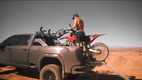 Kohl Denny runs this setup. He lives on the road and in the desert, hauling bikes and gear nonstop. As one of the most core FMX riders out there, he needed a rack that could take abuse and keep working. Ours lets him load heavy, drive hard, and not think twice about it.